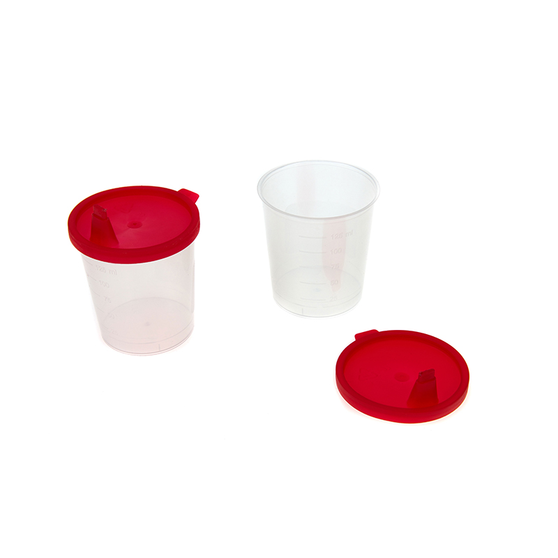 Urine sample container, with lid to clamp